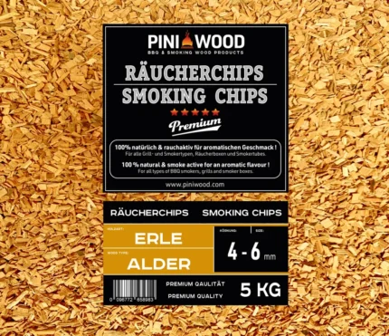 PINI 5 Kg Räucherchips Erle ohne Rinde 4-6 mm Smoking Chips
